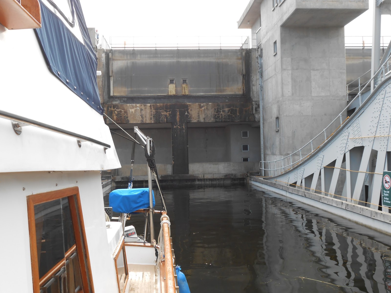 Thursday morning July 25th we finally finished the last lock on the Trent Severn Waterway #45 and began the trip along the Georgian Bay also dubbed the Thirty Thousand Islands.  This body of water can be quite tricky to travel unless you carefully study and prepare your charts, but it is probably the most beautiful waterway yet.  The weather today was perfect and the scenery breathtaking.  I will attach several pictures for you but they cannot really do Georgian Bay justice.  This entire area is full of granite boulders jutting up and out from all directions.  This makes many areas quite shallow.  Out paths have crossed again with our good friends  on the Miss Ginny and we are traveling this stretch of the loop together.  Tonight we are anchored in Georgian Bay along large granite boulders and small coves.  Friday July 26th  we have covered another 63 miles of Georgian Bay today.  The maze we traveled on the small craft route as opposed to all open waters is really a crisscross of paths through boulders and rock beds.  This is no time to take  a nap or look away.  We are anchored again this evening in a large cove we found on the charts for anchorage along with the boat Miss Ginny.  Tomorrow will bring more open water before we can tuck back in on the small craft route at Killlarney.  Saturday July 27th, after a very early start, a rough few hours on Georgian Bay, and back into the small craft we have come to the end of Georgian Bay.  This evening after covering 68 miles today. Our journey today took us past the town of Killarnery which begins the North Channel where we stopped for lunch at the famous Hubert's Fisheries Fish and Chips where they serve up fresh perch just caught and fried, served out of an old school bus dockside.  From here we covered the last 22 miles or so to Little Current where we are anchored in a cove and plan to buy groceries tomorrow morning before we head up the North Channel.  If all goes well we should be out of Canada in just a few days.  While Canada has been beautiful it is also a very expensive place.  The sales tax rate is 13%.
